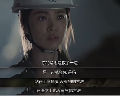 第7集一开始那个烦人的陈所长就叫嚷着要先打开他办公室的通道,从他前几集出场开始,我一看到他就烦,他应该是目前为止这部剧最讨厌的角色。宋仲基和男二一直想方设法救援幸存者,这时基本上就是军人忙着搜救,医生忙着治疗。第7集里乔妹和宋仲基面对的最大难题就是高班长和另一个工人同时被困,救一个另一个就会丧命。这个状况让我想到了《唐山大地震》,乔妹和宋仲基这时内心的折磨不比徐帆在电影里小。