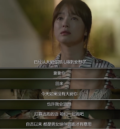 两个人面对了生死考验,宋仲基又开始撩妹了,讲真,不管什么时候说女生漂亮她都会高兴。