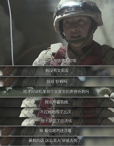 乔妹和宋仲基好不容易谈个情说个爱,第二天的搜救现场烦人精又来幺蛾子了。搜救队在地下发现了幸存者,宋仲基在里面救援,烦人精居然开着重型机械设备打墙!!宋仲基和幸存者的出口因此被落石困住了,看到烦人精一副不顾别人死活的嘴脸我都想冲进去揍他!因为落石不断崩塌,宋仲基又挺身而出帮幸存者挡落石,看这段的时候,我心里的os就是:他是不是觉得自己有九条命啊!跟幸存者说的这段话也是蛮萌的,不断自黑,哈哈哈哈哈。