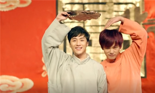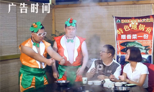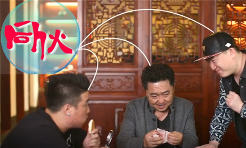 郭麒麟和张鹤伦还为就餐的食客表演了一段鸡精广告。