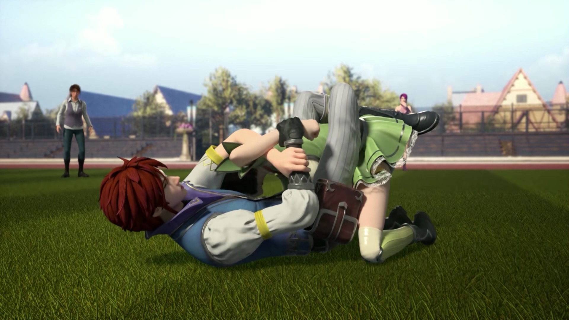 飞起来就是一巴掌,当然这也是男主计划中的一部分,既然知道会有这样的结果,早就想好了应对的方法,那就是剪刀脚。