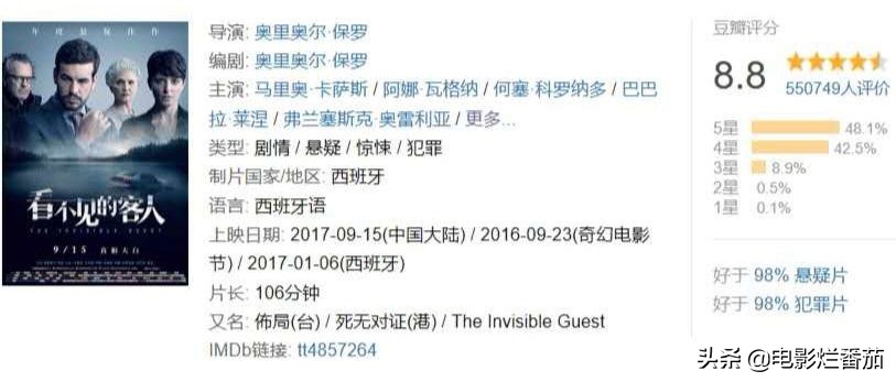2017年,现象级悬疑片《看不见的客人》在国内掀起一波小高潮。