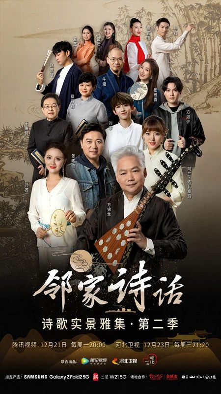 一篇优美的诗词,一首好听的乐曲,伴随着一份恬静悠然,由腾讯视频、河北卫视、一心明德文化有限公司联合出品的诗歌实景雅集类文化综艺节目《邻家诗话》将于12月21日起,每周一晚20:00在腾讯视频,每周三晚21:20在河北卫视播出,在此之前,《邻家诗话》第一季节目播出后深受观众的喜爱,豆瓣评分高达8.7分。并在2019年12月5日获得“tv地标”(2019)中国电视媒体省级卫 视年度品牌影响力节目称号和(2017-2019年度)中国广播影视大奖第26届电视文艺“星光奖”。不少节目片段也被网友称为“最容易吸收的工具书”被转载收藏。而《邻家诗话》第二季也将继续用雅集小聚的方式,带领观众走进中国传统文化,用不一样的打开方式,让观众了解诗歌背后的情感起伏。