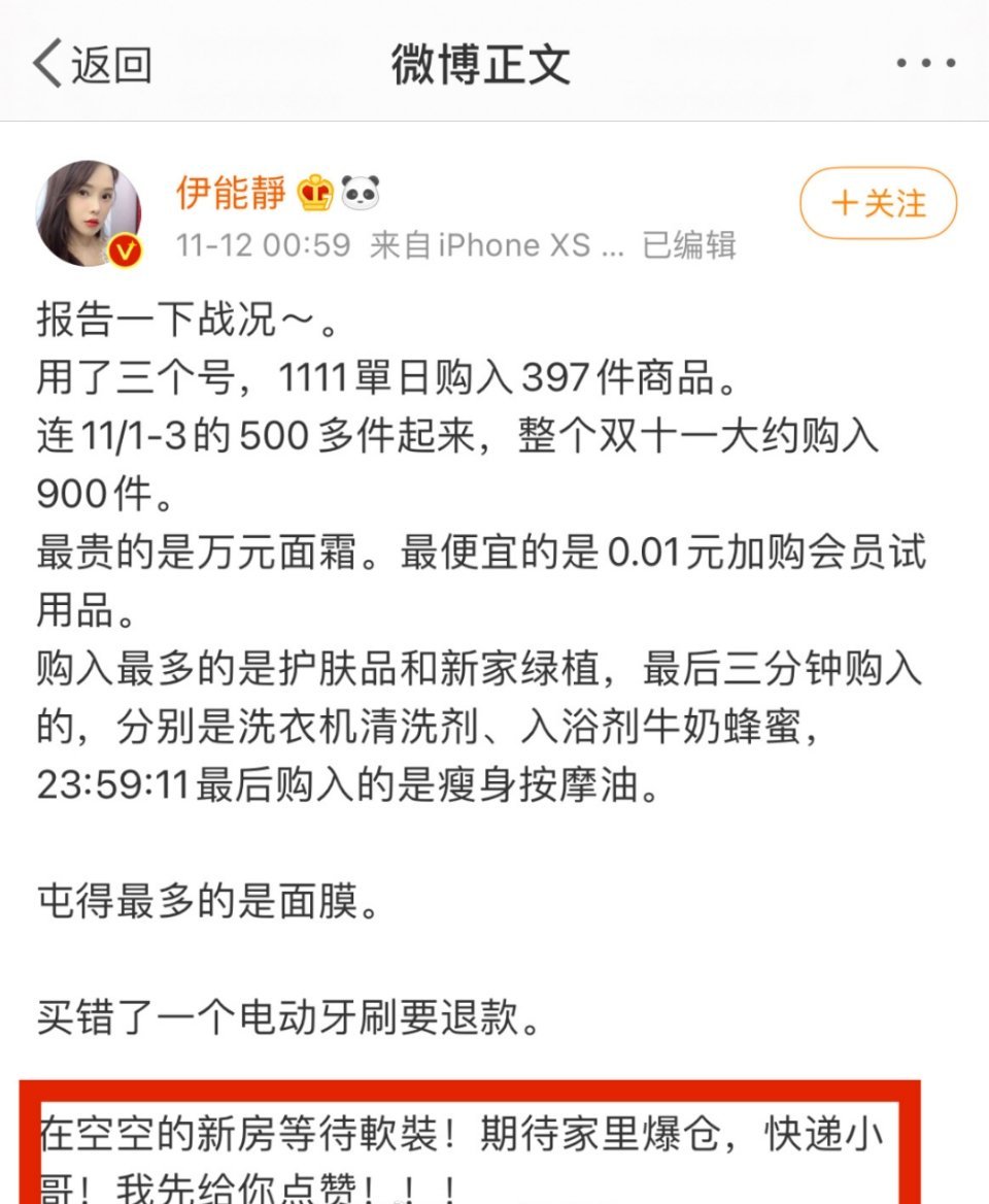 其实吧,伊能静这一款也是我们当代很多年轻人自身的真实写照,双十一过后兜里空空,路上的快递倒是一大堆,还一边仔细挑选一边辛苦凑满减,为了国家的gdp增长也真是煞费苦心啊!