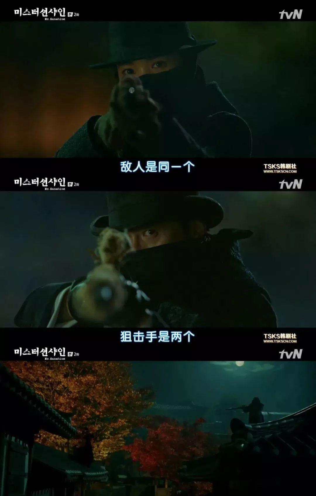 女主与男主初见面,有三次眼神交流的对手戏,先是各自蒙面持枪相对,再是街头真面相对,还有各自用手掩住对方的脸,只露出眼睛来“辨认”彼此。这三次交流,双方相互警惕,男主也一直以“观望”的姿态守护着女主,怎么都有点像当时美国对朝鲜所持的态度。