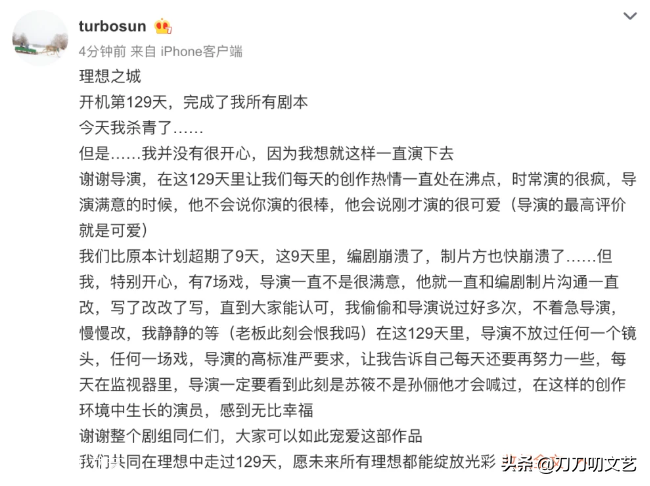 杀青时,孙俪如此感性地回忆:“这129天里,导演不放过任何一个镜头、任何一场戏,导演的高标准严要求,让我告诉自己每天还要再努力一些。”