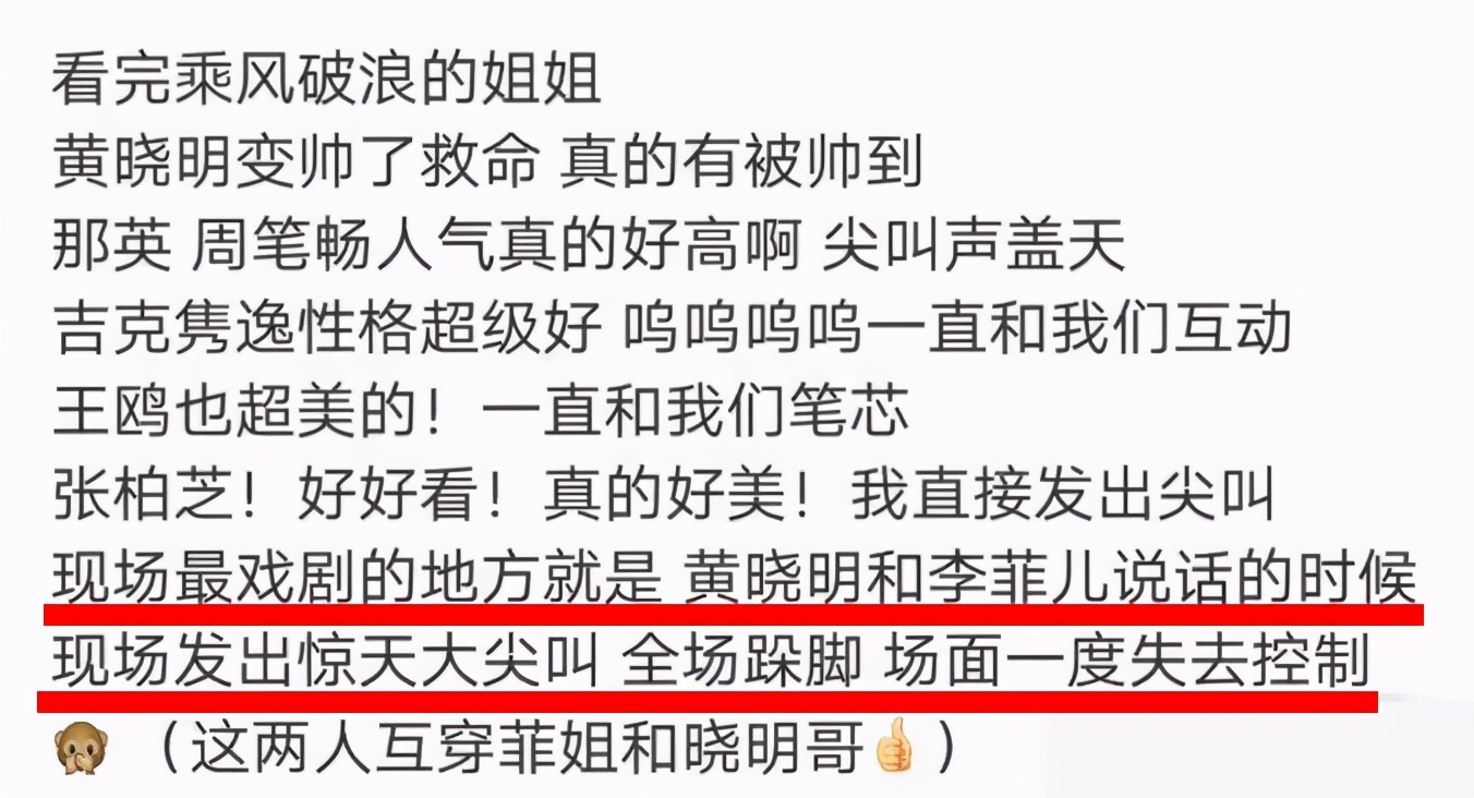 其实前些日子东方卫视的跨年演唱会上,黄晓明身为主持嘉宾、李菲儿作为表演嘉宾,两人就同过台了,只是没有任何互动以致掀起波澜而已。