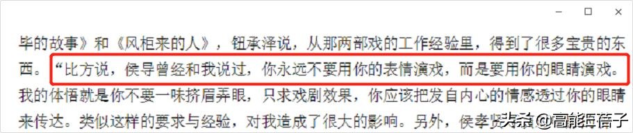 比方候孝贤教钮承泽演戏:“你不要用表情,你要用你的眼睛演戏。”两部电影下来,钮承泽就积累了不少宝贵经验。