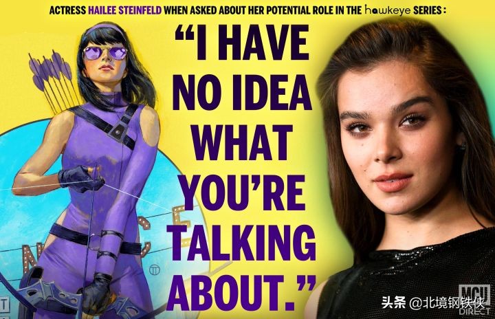 9月初,传言,海莉·斯坦菲尔德(hailee steinfeld)将出演迪士尼流媒体(disney+)《鹰眼》剧集中凯特·毕绍普(kate bishop)一角。近日,接受variety杂志采访时,海莉被问到这部漫威剧集时回答:“这个,我不知道!我真不知道!我甚至不知道你在说什么。”