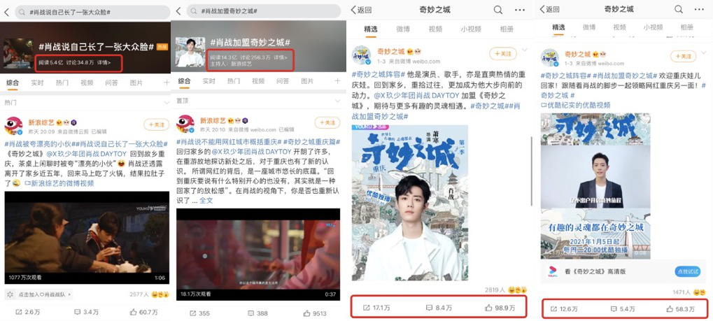 从1月3日公布肖战加盟,到如今的热度爆棚,这或许是一场事先张扬的、预料之中的突围路径。毕竟当天连续两条《奇妙之城》官微宣布肖战加盟的微博,累计转发评论点赞数就近200万——这恐怕是以杨幂、赵丽颖在内的85花个人微博都难以企及的热度,更遑论各大影视剧综艺官微。