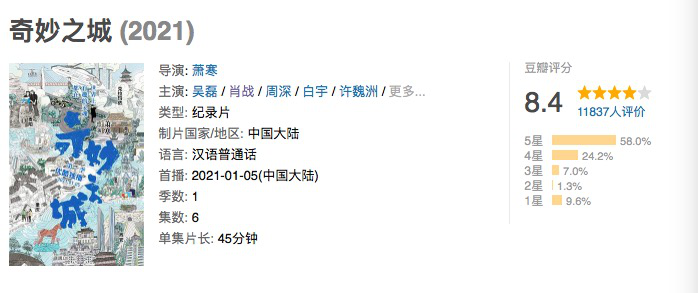无论是大多数纪录片的影响力难题,还是明星效应带给纪录片的双刃剑作用,不可否认,《奇妙之城》作出的尝试都颇具代表性,它的破局也为更多非头部纪录片提供了可行性方向:或许相比在争议中前进,籍籍无名沉默在泛滥的信息海洋中,更是对创作者的伤害;而如何为明星找到一个合适的身份,同样也是考验纪录片创作者的关键。
