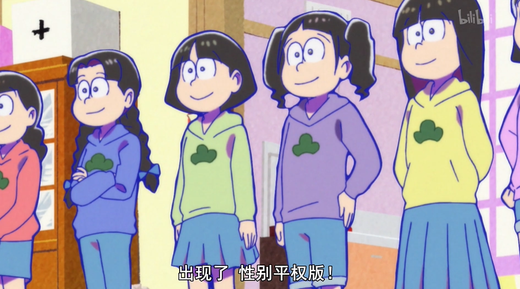 然而真正出现在观众面前竟然别的六胞胎,看这个样子颜值好像还是挺高的。这五个人连声优都变了,甚至乎还出现女性版六胞胎,国际版六胞胎。话说回来女性版六胞胎就算了,这个国际版六胞胎是怎么生出来的,毕竟人种都不一样。