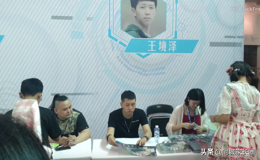 2018年,上海理想乡漫展,在展台上,一个年轻人正在热络地给粉丝签名。