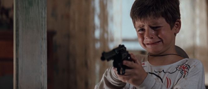 有一次,普疯狂变态地要伤害男孩菲利普时,早就看他不顺眼的布奇干脆一枪干掉了他。
