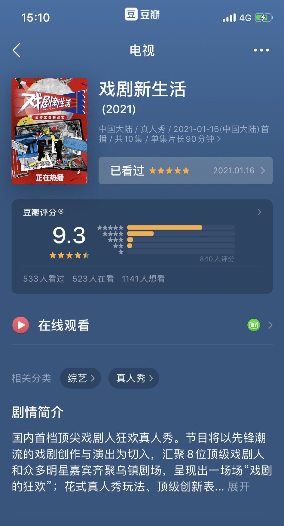 今天发现一部新的宝藏综艺—《戏剧新生活》