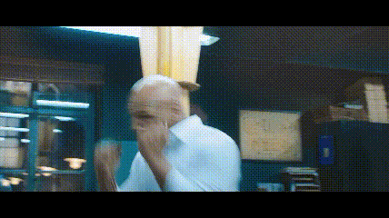 而最后时间到了的那一刻,放慢镜头也可以看到是费兰奇的拳头先碰到叶问的下巴,但因为闹钟响了所以收力了。