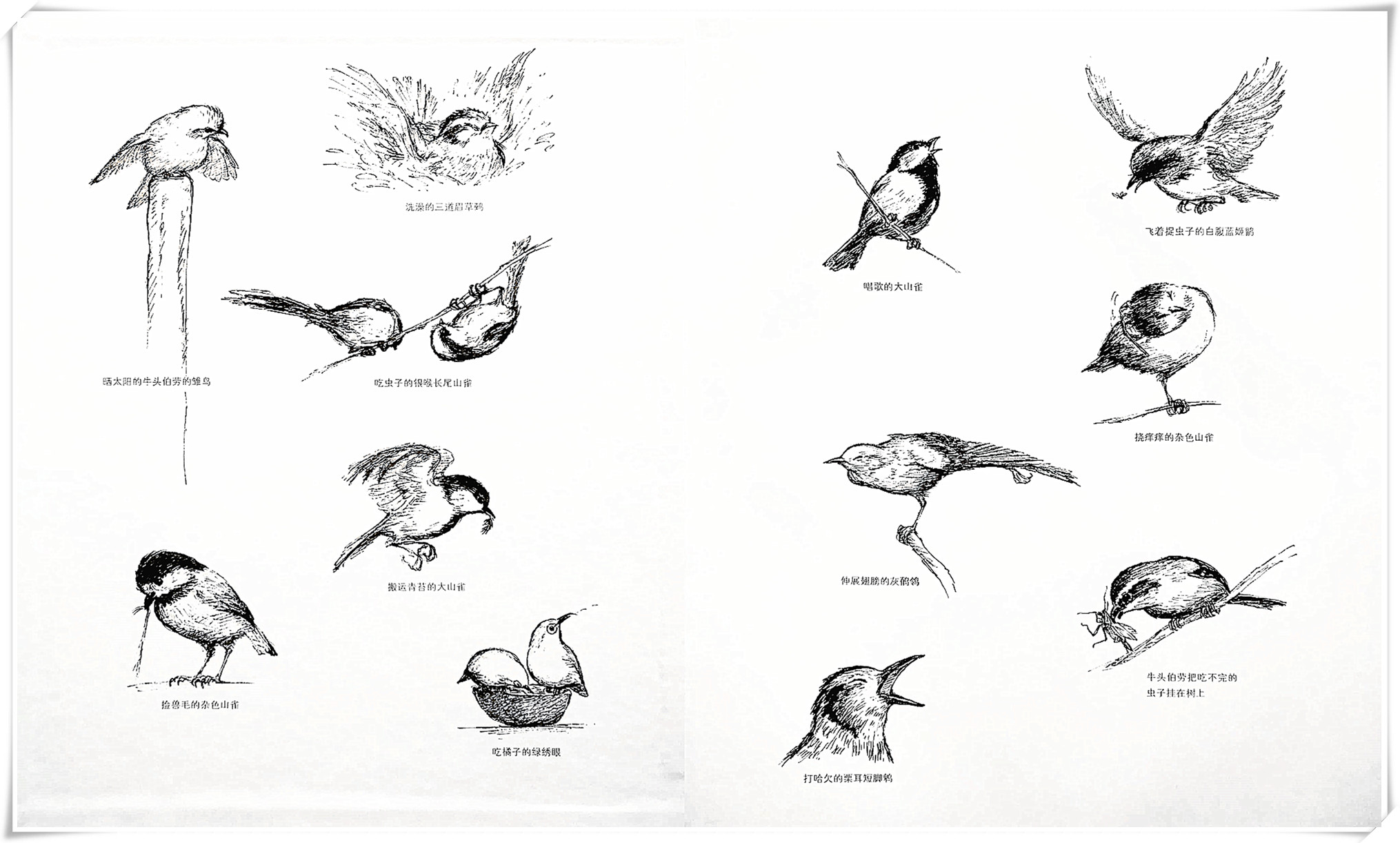 作者把鸟生活的细节描述的很细致,让小读者不出家门就能得到认知。当然从书上有了一定认知后,还是要回到自然中去辨识更好。