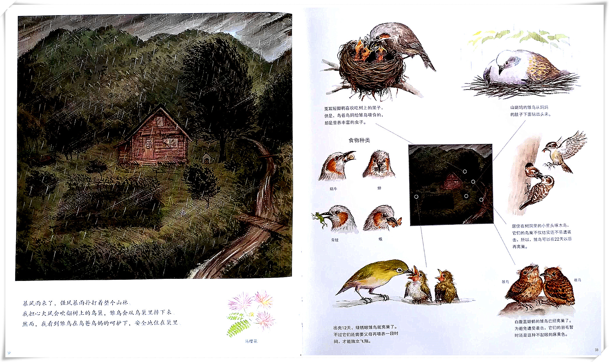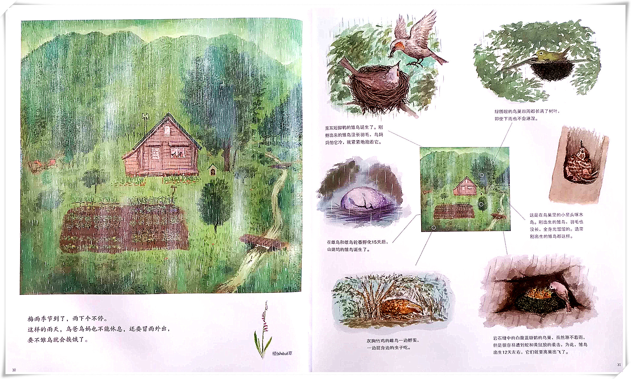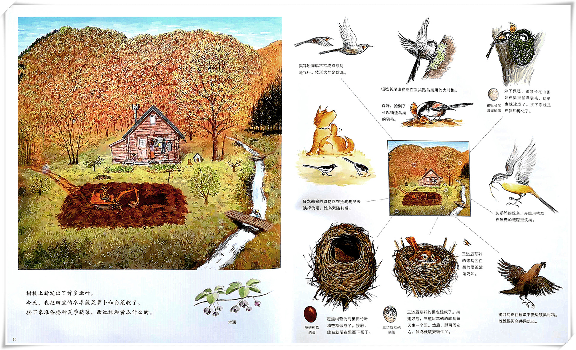 书中就是讲述了鸟儿一年四季从出生到长大的点点滴滴。每本书的封面就是这本书的眼睛一样重要。