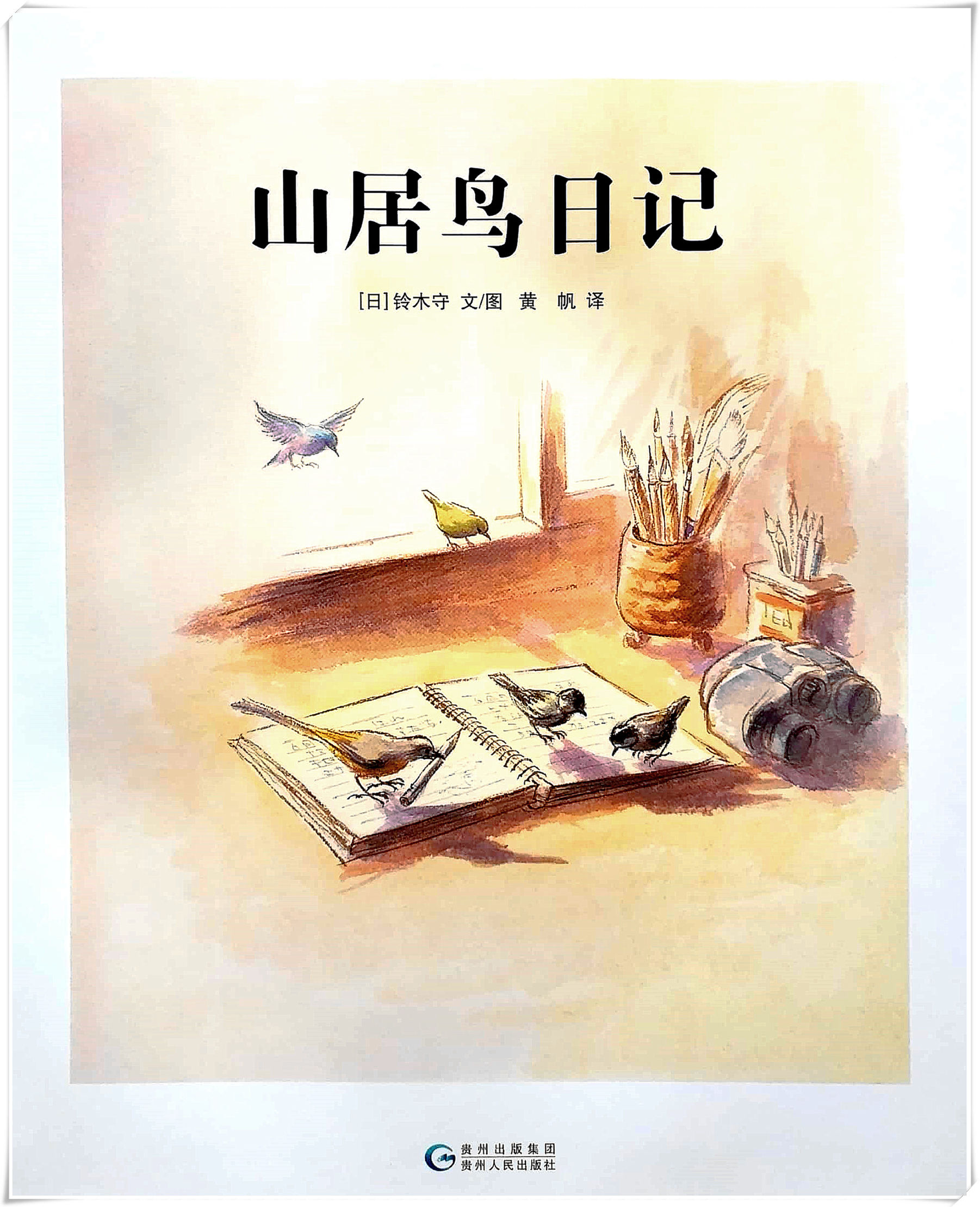 好多鸟儿飞到了笔记本上,它们和铃木守关系很好。桌子上还有望远镜,一定是铃木守用来观察鸟儿的。铃木守每天都在本上记录着鸟儿的生活。