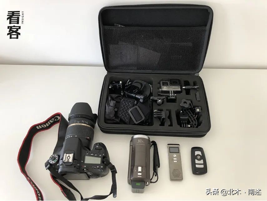 背包里常见的工作装备通常是五大件:手机、摄像机、单反、录音笔、望远镜。更精密的设备不能用了,针孔摄像头属于违法设备,调查取证必须合法合规,稍有不慎就变被告。不过倒是可以改装,如果住户对门恰好放着鞋架,那是再好不过的伪装道具,手机、自拍杆外加远程蓝牙遥控,就能无限接近专业设备。