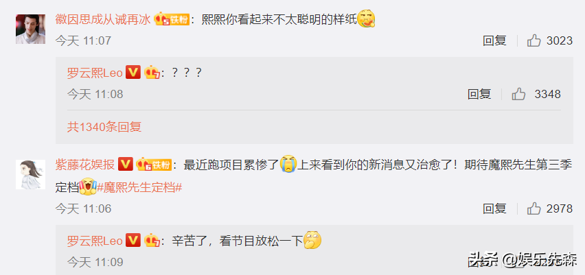 还有粉丝直言最近工作非常辛苦,《魔熙先生》第三季定档是最好的礼物,期待!对此罗云熙安慰道:辛苦啦!看节目放松一下!只要评论,就有机会与偶像罗云熙近距离互动,得到“被翻牌”的机会,难怪天妃会如此热情。