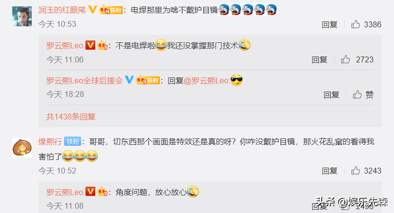 故事继续,在《魔熙先生》第三季公布宣传视频后,罗云熙本人第一时间转发,随后的暖心举动获赞,你没有看错,罗云熙在百忙之中现身评论区,与力挺自己的天妃互动,有粉丝看完宣传片后,疑惑道:电焊那里为什么没有带护目镜,切东西的画面是真实的吗?火花乱窜让人害怕。对此罗云熙安慰道:不是电焊,我还没掌握这种技术,这是角度问题放心吧!