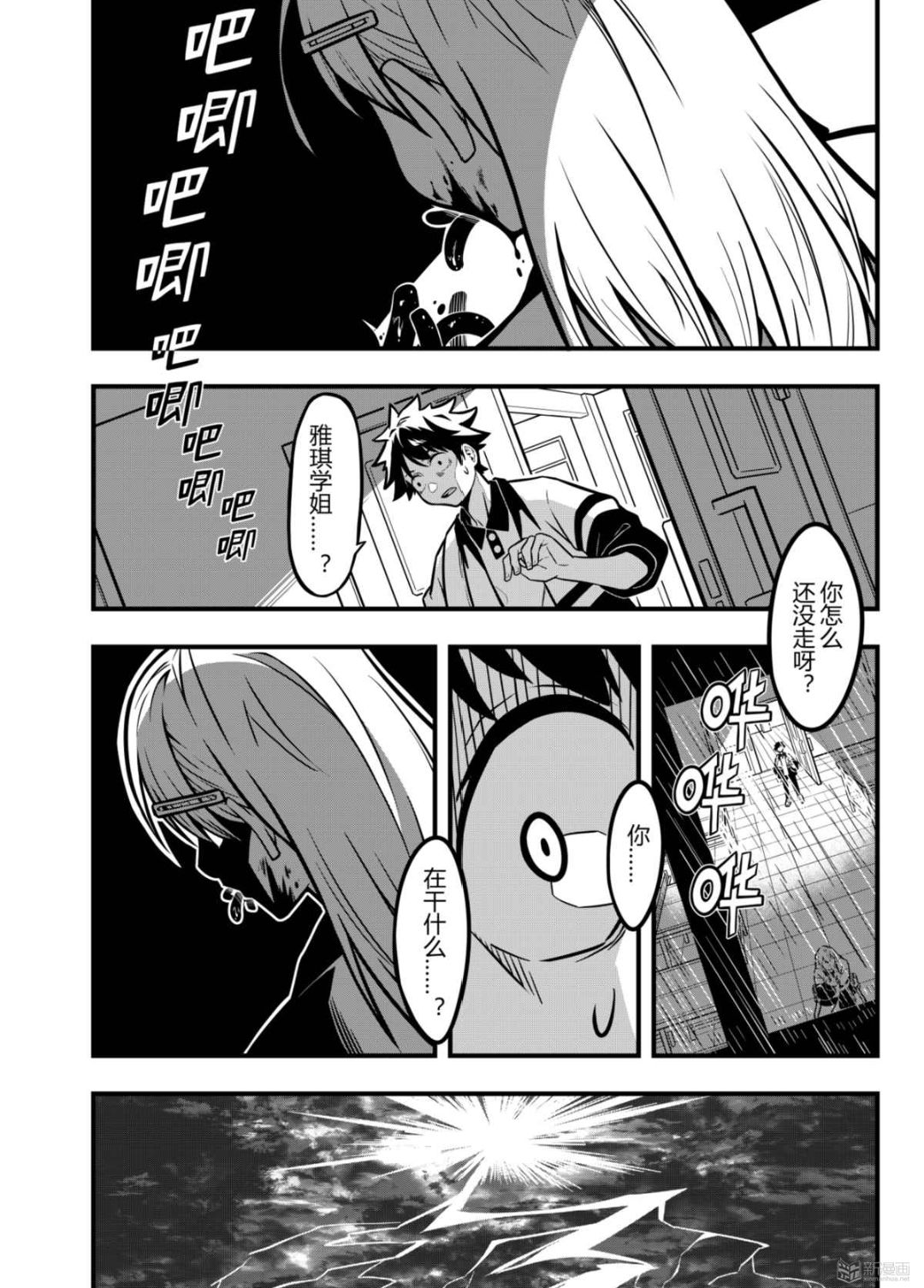得以正常放学的阿明在路上嚼着辣条,和朋友们谈起雅琪学姐,毫不意外地惹来朋友的嘲笑。阿明不以为意,发现自己忘带球拍,便和小伙伴们打了招呼,准备回教室拿球拍。却不料撞到学姐在黑暗的教室中坐在地上,嘴里似乎咀嚼着东西,隐隐还能看到诡异的红色液体……
