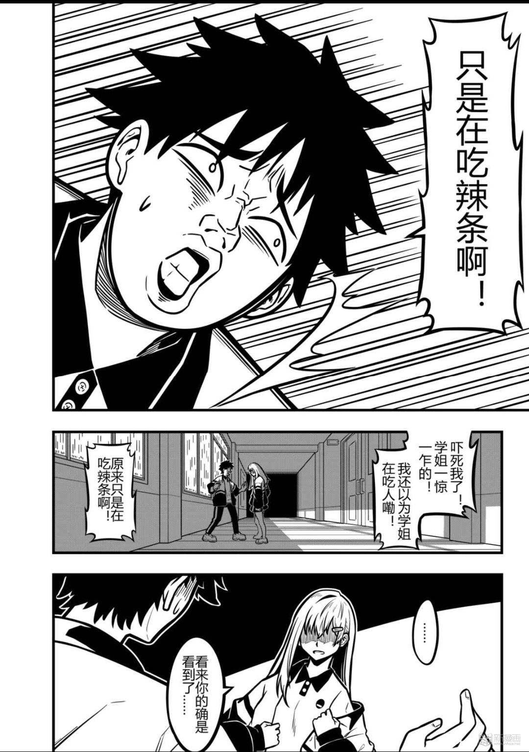惊不惊喜?意不意外?校园文只是伪装,突如其来的搞笑和不断的反转才是这篇漫画的精髓。温柔美丽的学姐可以是肌肉怪女,仿佛加持了钢筋铁骨buff,轻松在墙的两边“反复横跳”,挥手便能砸倒一面墙,扬言要将撞破自己秘密的小学弟毁尸灭迹,可怜弱小又无辜的学弟虽然像惊弓之鸟般逃窜,也不忘疯狂吐槽。画风一时间诡异万分,却好像……还挺欢快?