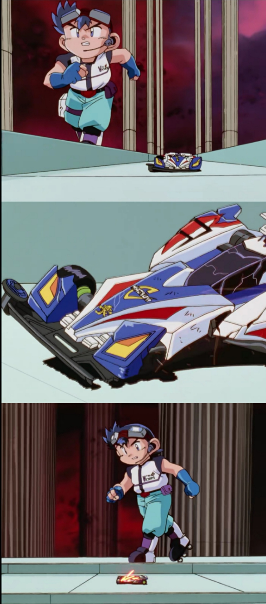 初次参赛的二郎丸因缺乏经验,将比赛用的电池拿来做赛前暖车,为了不输掉比赛,趁着小豪因为感冒而睡着的间隙,二郎丸替换了他的电池。鹰羽龙在得知真相后,将自己的电池换在了对方的车上,自己用被暖过车的电池,从而导致三角箭停在半道上,险些输掉比赛。