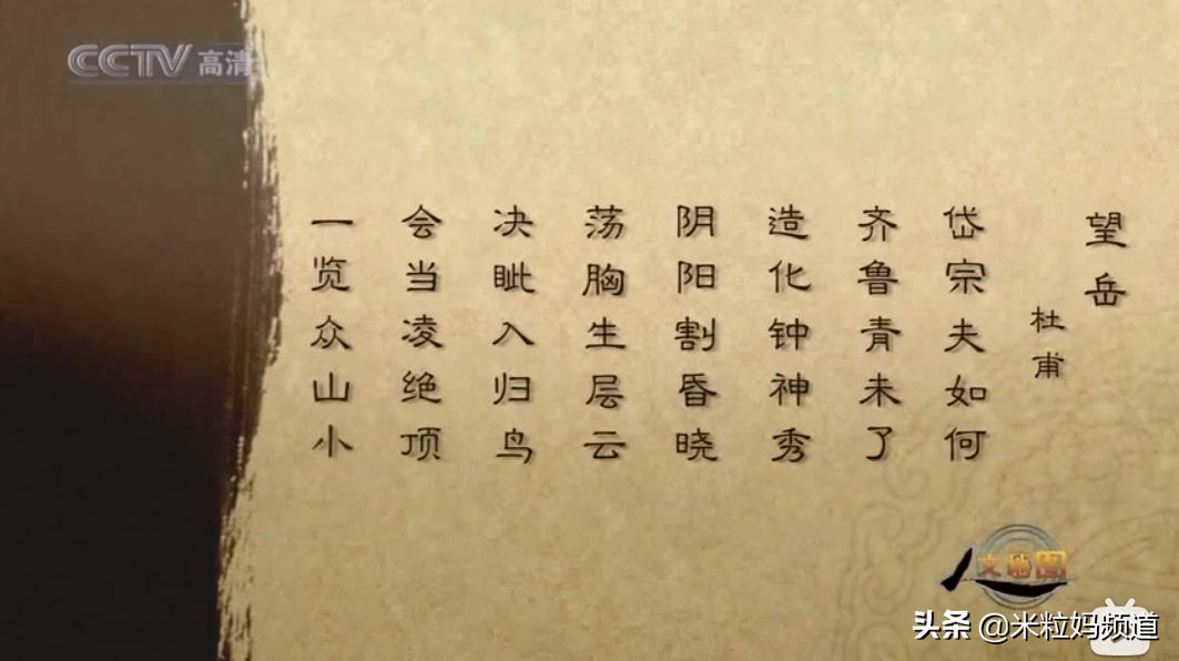 比如有一集《一览众山小》,一看都知道是杜甫那首《望岳》▼