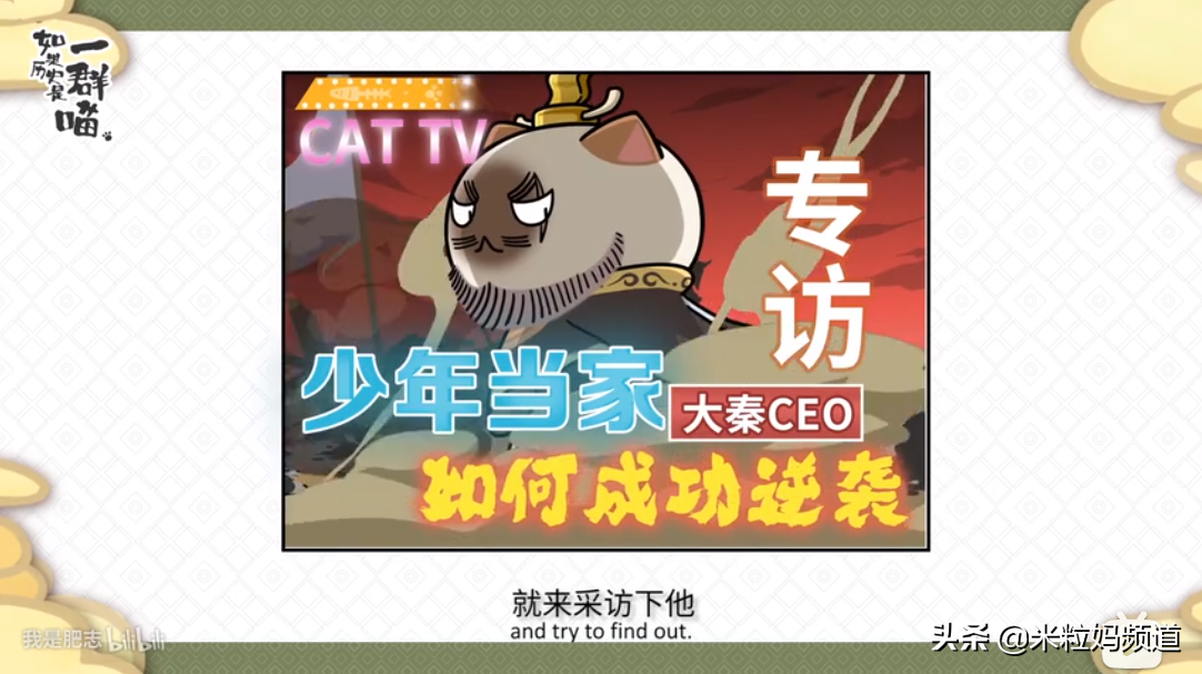 它并没有按照传统的套路去告诉你秦皇嬴政怎么登基的,而是制造了一次专访,让嬴政喵自己“说出他的故事”。