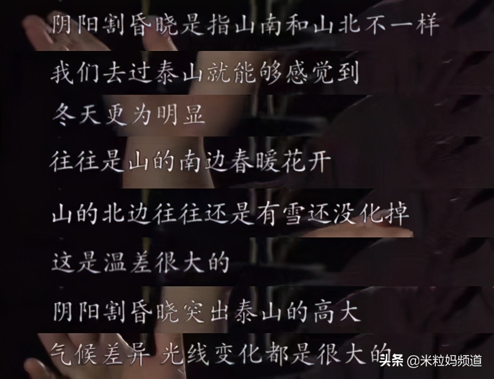 “阴阳割昏晓”,讲到山南山北的差异,米粒妈觉得既能感受到诗的意境,又上了一堂生动的地理课。