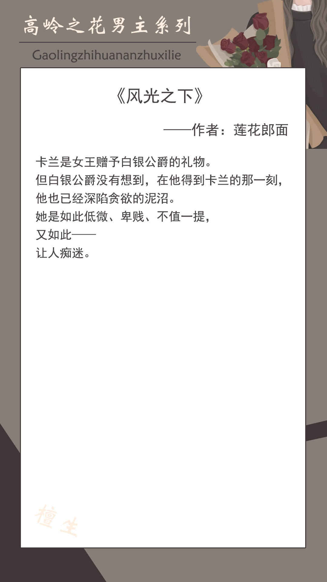 第五本:《风光之下》作者:莲花郎面