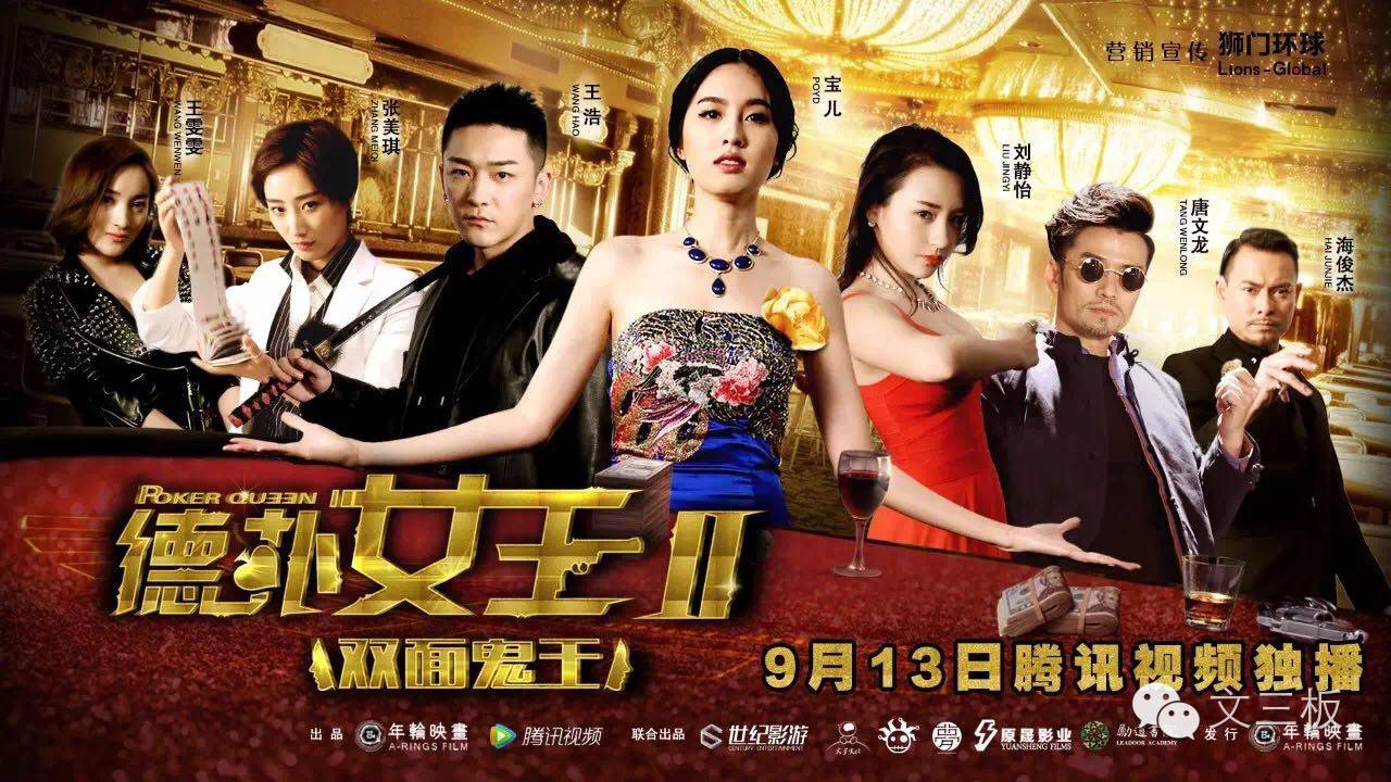 9月13日,由年轮映画、腾讯视频出品的《德扑女王2双面鬼王》在腾讯视频独家上线。凭借独特的题材、饱满的故事情节、紧凑的节奏以及精致的舞美和后期制作,《德扑女王2双面鬼王》一经上线点击量秒破1000万,三天点击量破3000万,日均点击1016万,周点击6098万双榜夺冠,截止至今天点击量已经突破8350万,日播放量均位于前三名。