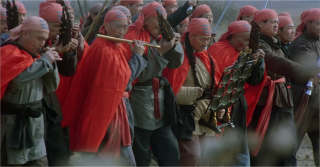 然后就到了义和团和洋人的决战之日。八国联军军容整齐,义和团杂乱随意,甚至还有一群迷信的吹鼓手。