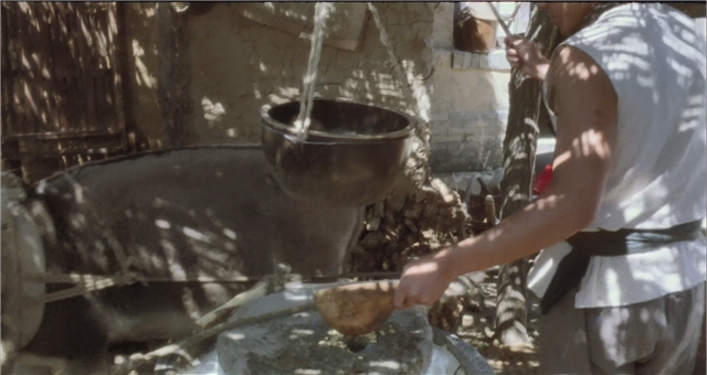 磨豆腐为生的傻二这里也看得出老式的豆腐磨,需要赶一只驴来作为动力。