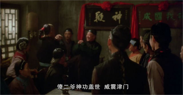 索老爷排场大,众人用轿子抬着他进傻二的院子。傻二见这阵势恭恭敬敬,听着还算是知识渊博的索老爷介绍这些南北拳法,更像是个说相声的,也是天津传统艺能。