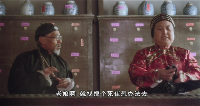 但是老板娘是个社会人,典型的天津刁妇,用银子打点死崔,稍稍用一点激将,玻璃花就暴怒着出去找傻二报仇了。天津人的嘴毒出名,老板娘随口就说出“说傻二要把玻璃花(三爷)的两只眼睛抽成一对玻璃花,连饭锅茅坑都分不出来。”