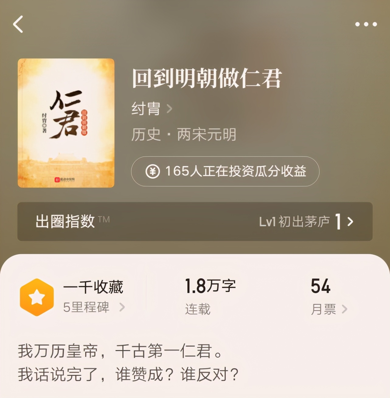 不过我个人没怎么接触过这位的作品,他的上本小说是本仙侠,结果转型失败又重回明朝了。