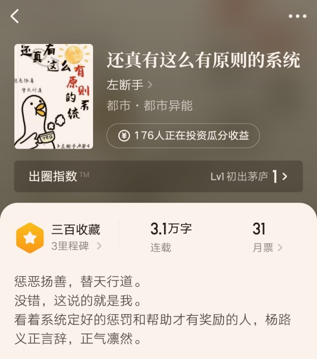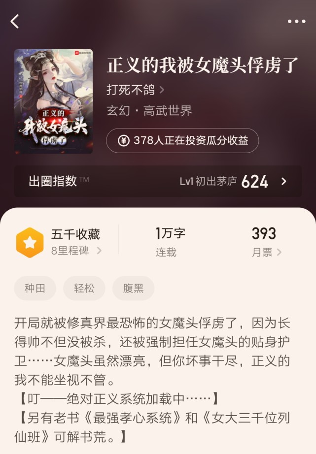 打死不鸽,《我的孝心变质了》的作者,只可惜这本小说在快要万订的时候被下架了。我个人订阅了不少,还没来得及看,感觉有些亏了。