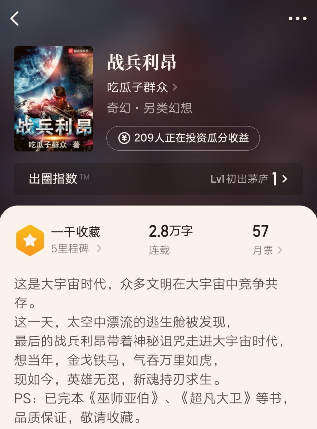 不过还是要说明一下,盘点只是分享一下资讯,并不是专门的推书,至于是否要去看一本小说,终归还是要小伙伴自己的选择。