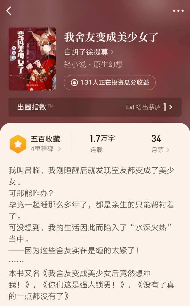 这本新书讲述的是一个男生宿舍里,除了主角以外,其余人都变成美少女的奇葩故事。