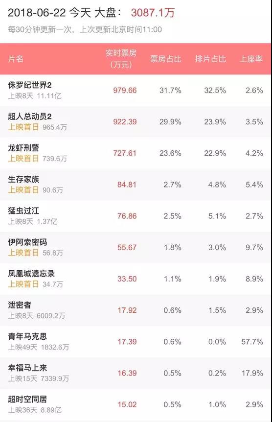 新作不足以撑起票房,而从已发布片单来看,内地影片票房一个能打的也没有,即使《侏罗纪世界2》和《超人总动员2》正常发挥,今年和往年的整体表现也会有一定差距。