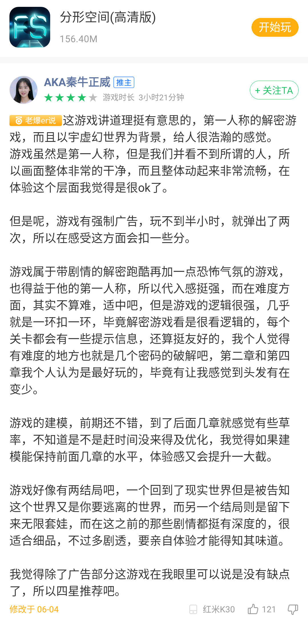 以游戏质量评判标准的要求来看,《分形空间》够不上文章标题所说:佳作以上,神作未满。