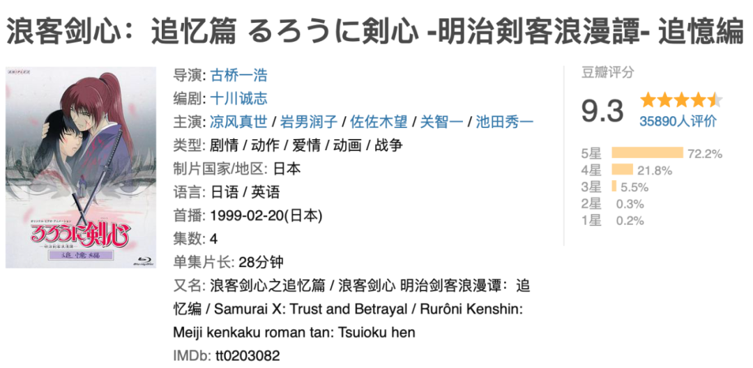 绝佳的故事加上还原度高,这便是《浪客剑心》在漫改界不败的秘诀。