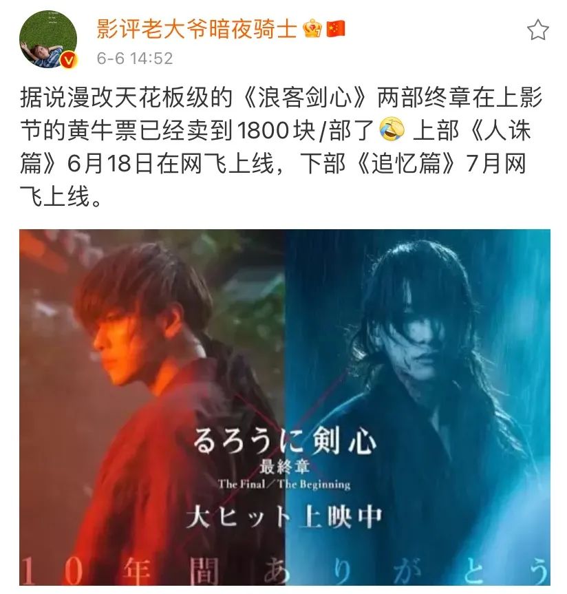 今年六月份的时候曾在上海电影节展映,票价一度被炒到过1800元。