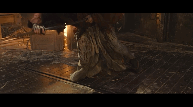 我们可以看到高手之间剑拔弩张的拔刀术对决。