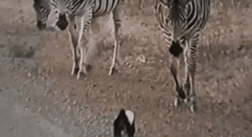 好奇的斑马想凑近看一眼小蜜獾,