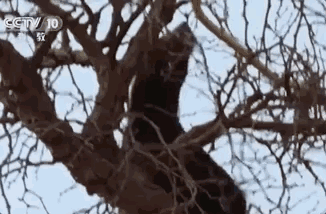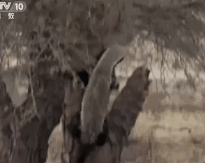 蜜獾爬上树,