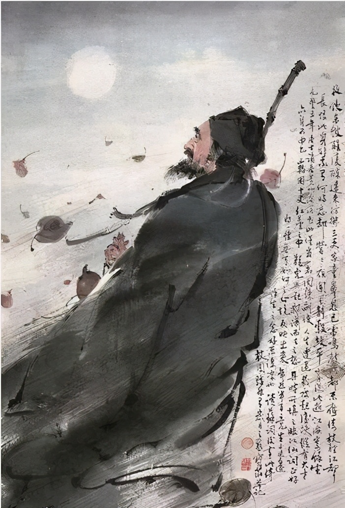 夜色苍茫,月色清冷,一个寂寥的背影,独自面对这滔滔不绝的流水,半生荣辱,尽数浮上心头。